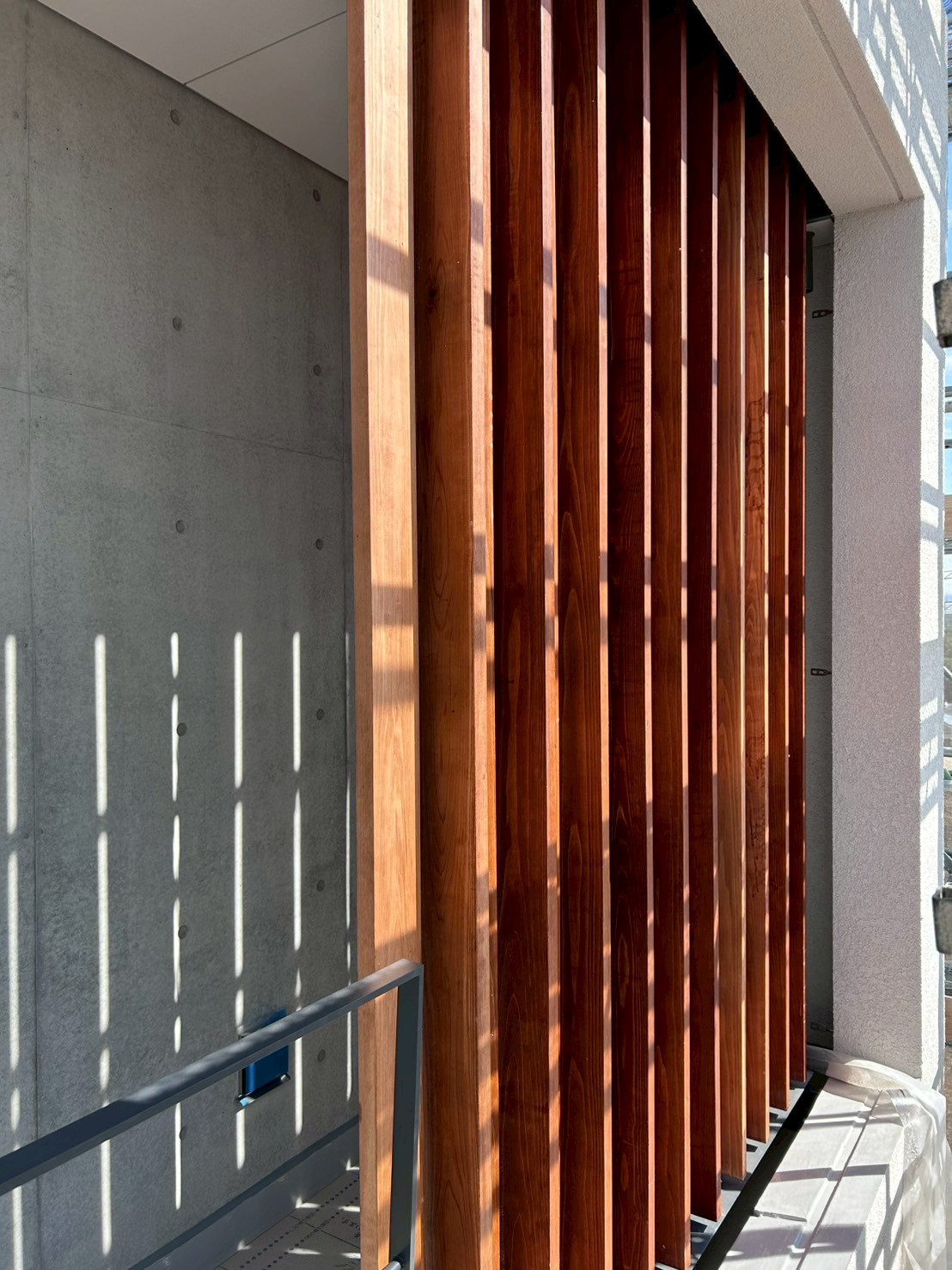 ルーバーはデザインだけでなく、目隠しや日光の調整の役割もあります。